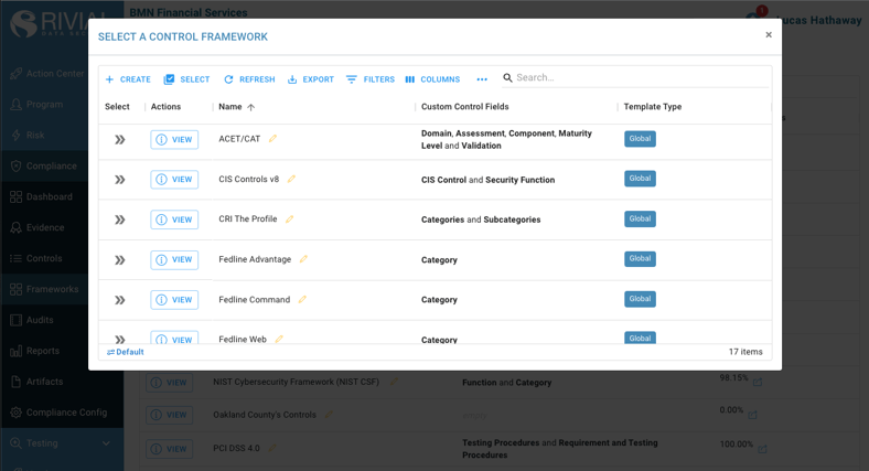If the above setup is more than you want to take on, you can be up and running in the Rivial Platform in under an hour. We have all common control frameworks pre-mapped including the FedLine controls for you to utilize with one click setup.