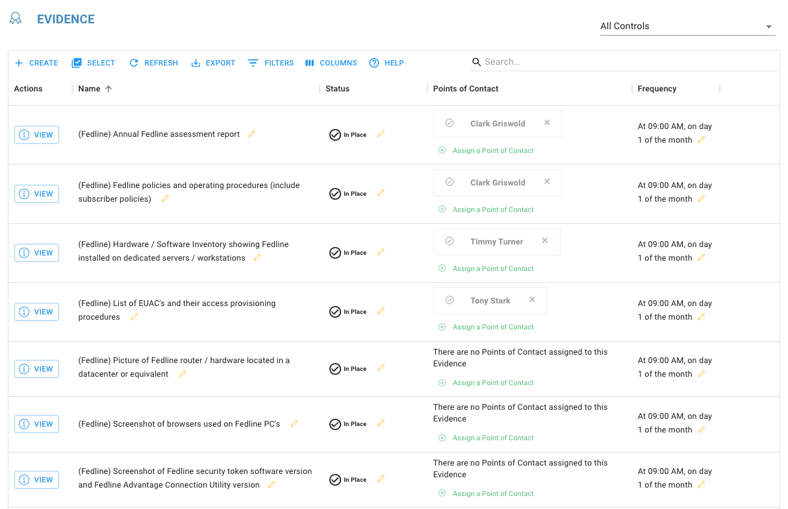 Once your mapping is setup, you want to assign your evidence items to their respective owners. For example, you will want to assign the anti-virus screenshot to the employee responsible for managing anti-virus and set a periodic email reminder to go out to that person to gather the evidence.